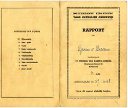 | Schoolfoto Lagere School Rapport schooljaar 1957/1958 St.Thomas van Aquino school Boomgaardstraat 52 Rotterdam |